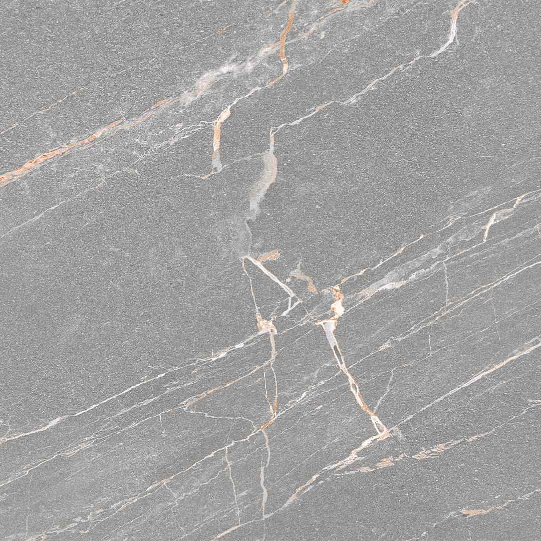 Mid grey marble effect with fine white and subtle warm veining.