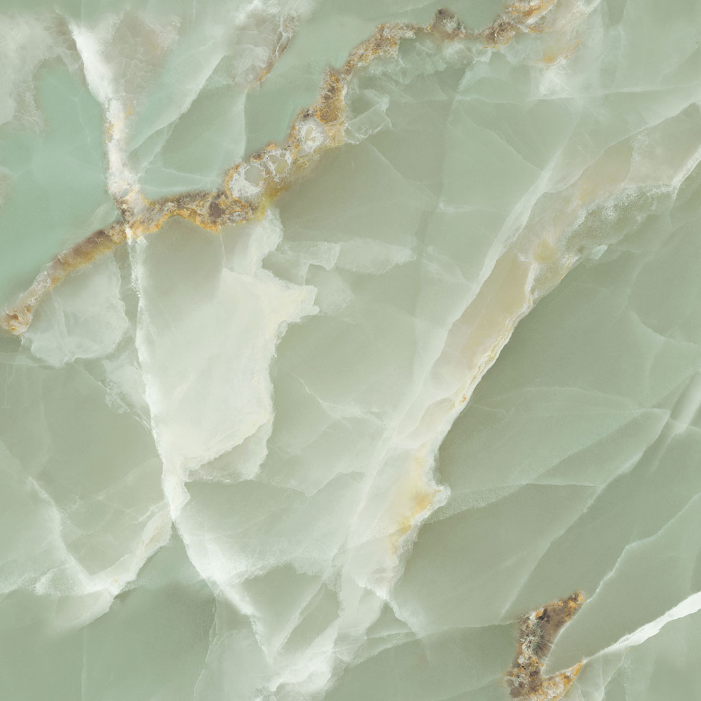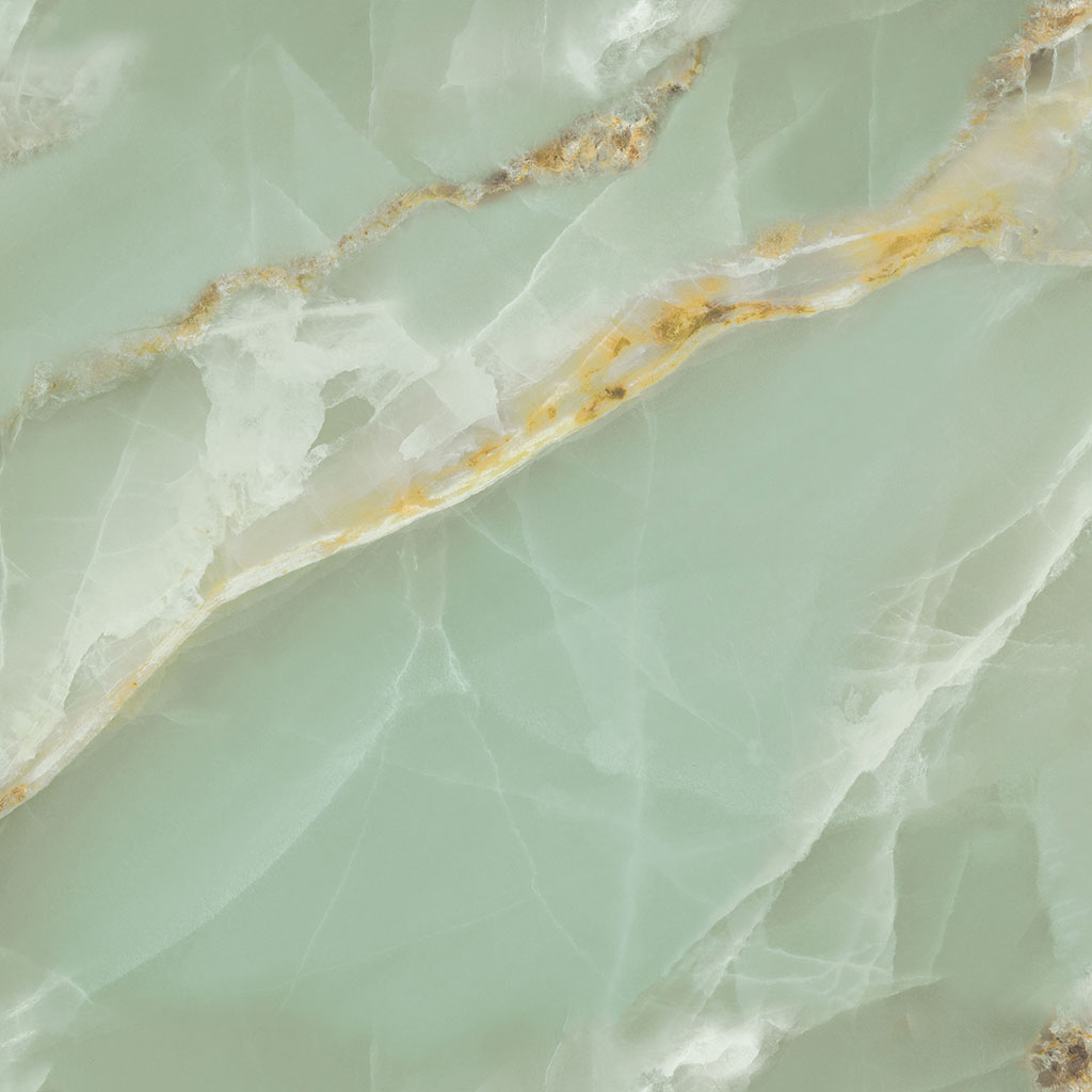 Muted sage green onyx effect with warm gold mineral accents.