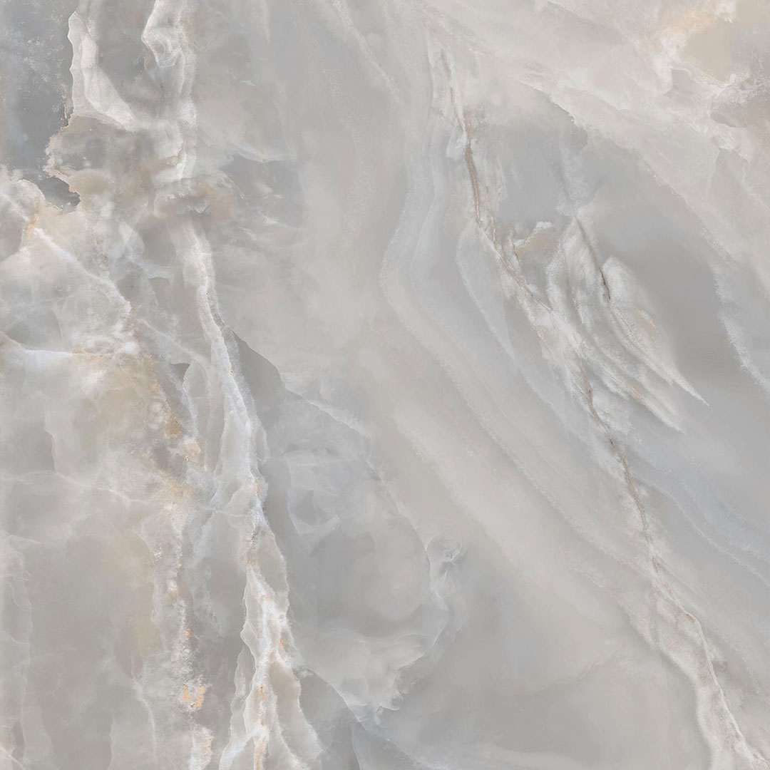 Clouded grey with soft white and warm mineral veining.