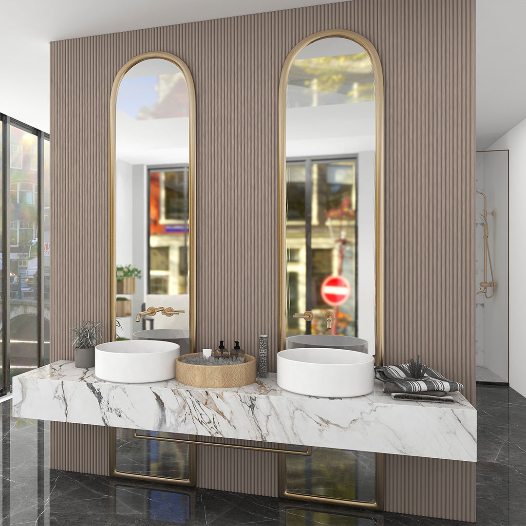 Aluvo Taupe Half Round Slat Panels are engineered to provide balanced neutral depth with structured vertical rhythm. Designed for contemporary interiors demanding both style and resilience.