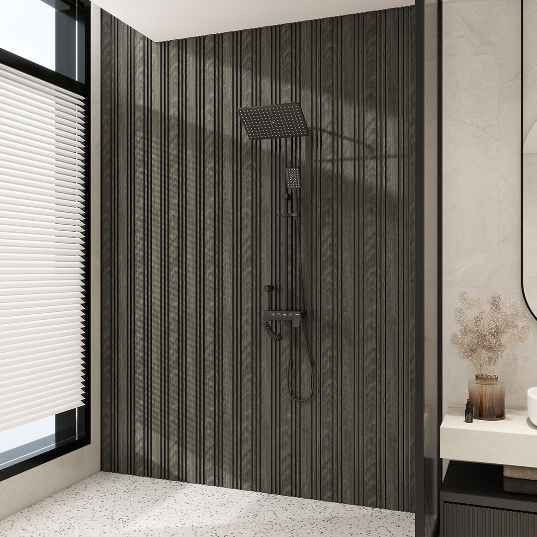 A waterproof LS slat panel offering bold vertical definition with alternating slat widths for a stronger design statement. Engineered for durability, stability and performance in humid conditions.