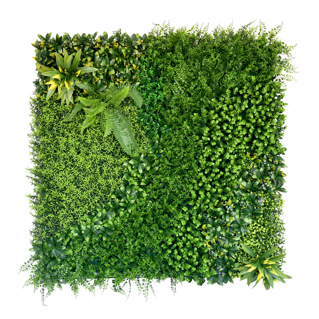 Beauty Secret plant wall offers compact modular greenery suitable for feature panels, smaller installations and creative wall layouts. The L500 x W500mm format allows flexible configuration across commercial interiors and decorative zones.