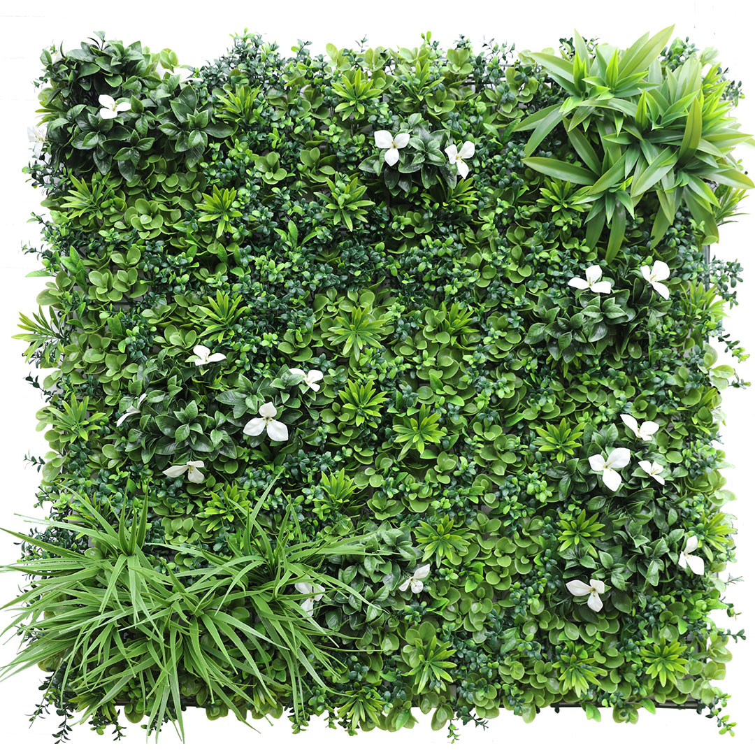 Desert Oasis panels combine multiple leaf styles to create a soft, organic plant wall finish. Designed for commercial feature walls and interior branding spaces, each panel provides realistic depth and full surface coverage.