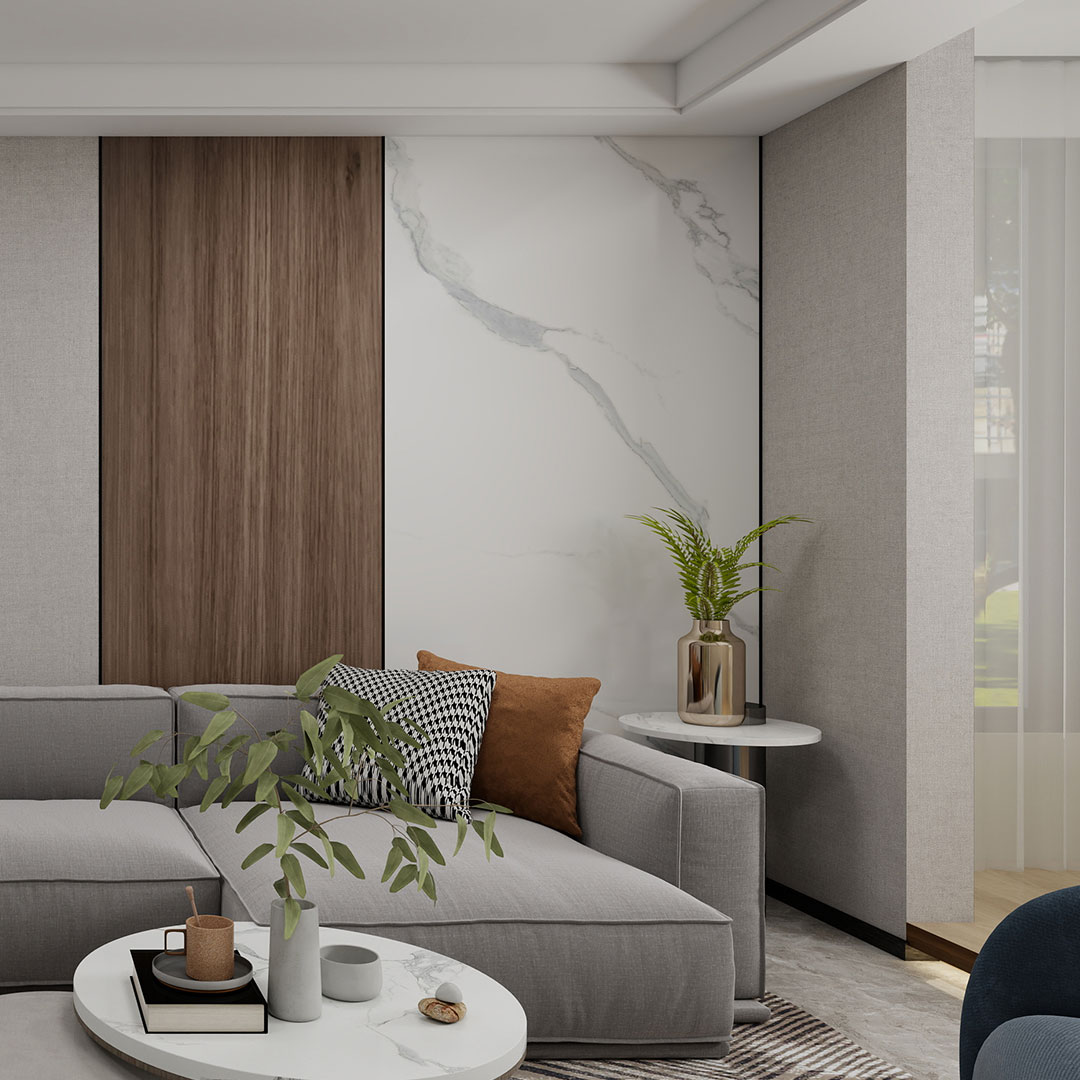 Smooth marble-effect decorative surface