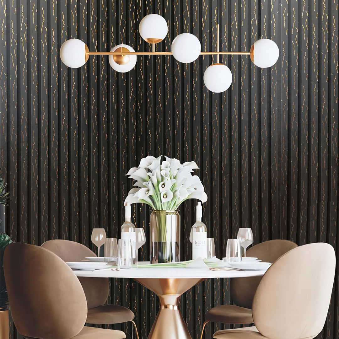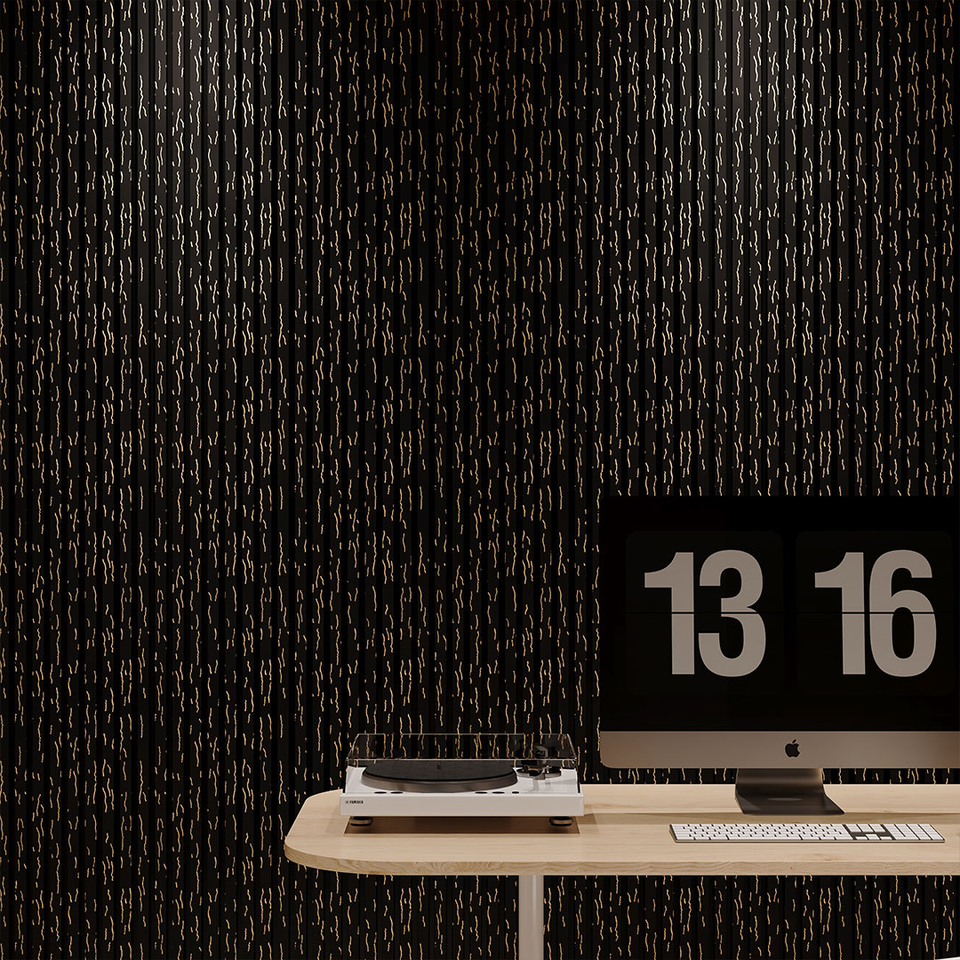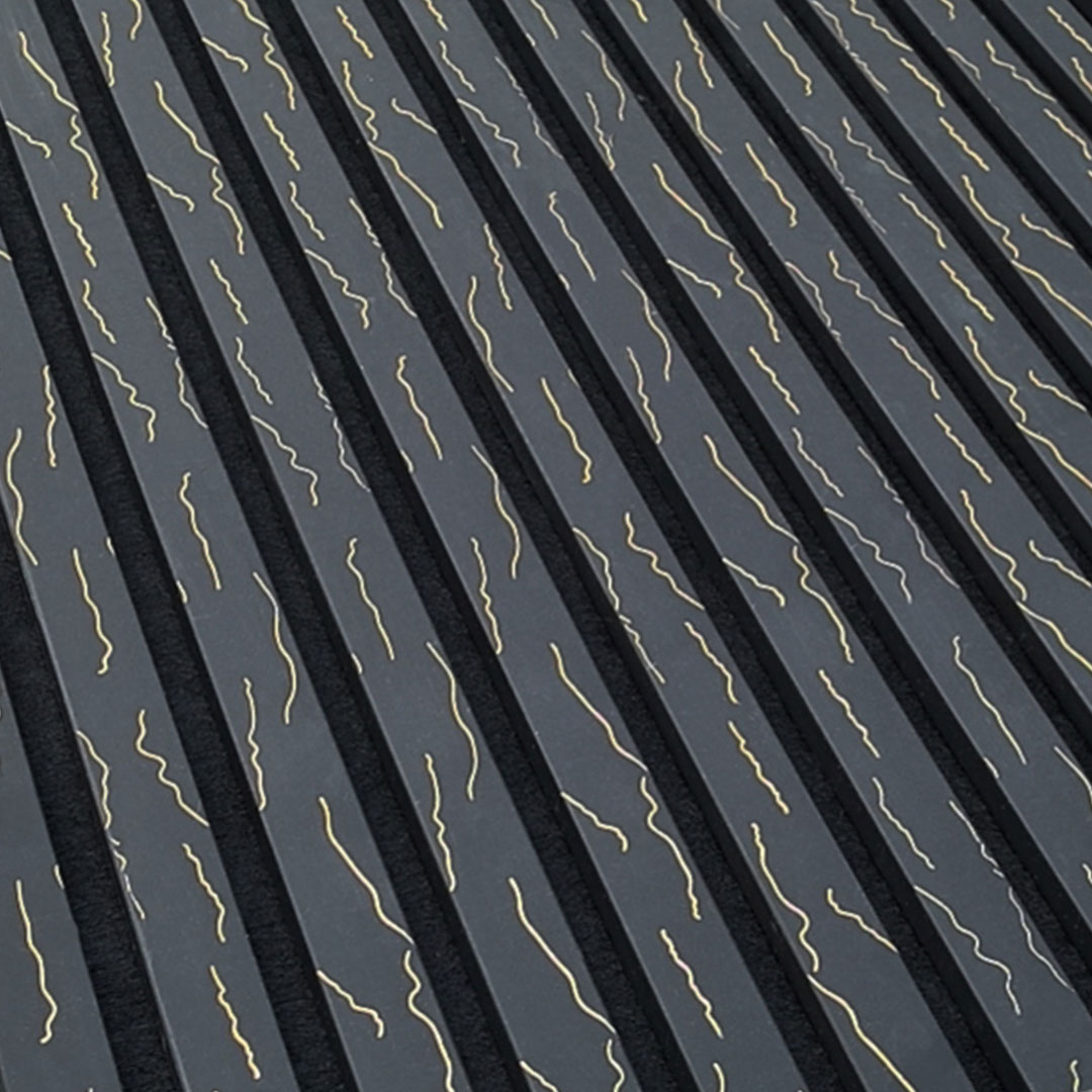 Black Gold Vein acoustic panels offer a bold marble effect enhanced by metallic highlights. Designed for impactful feature walls in hospitality and corporate settings, these panels combine decorative sophistication with integrated sound absorption.