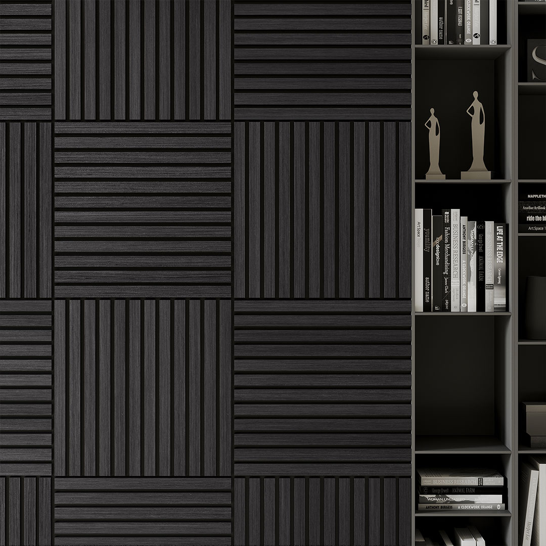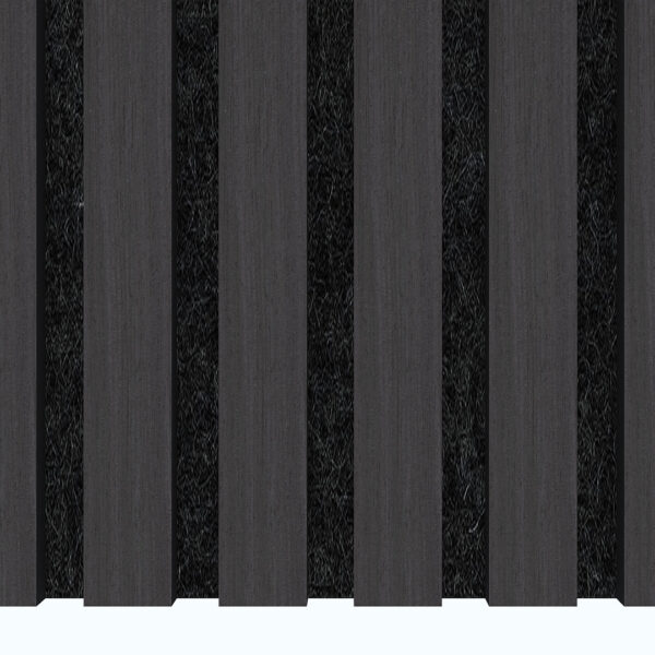 Black Oak acoustic panels deliver a dramatic slatted wall finish suited to premium commercial spaces and modern interior schemes. The structured slat design enhances visual depth while the acoustic backing supports noise management in busy environments.